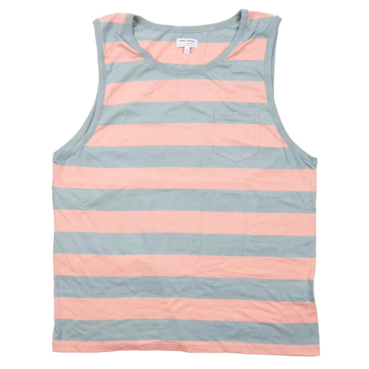 Made from 100% organic cotton, the Banks Journal Diaz Tank is soft, breathable, and perfect for those who value sustainability. The ribbed collar and armholes add a touch of sophistication to the overall design, ensuring that you look stylish no matter the occasion. The striped pattern gives it a classic, timeless appeal that can easily be paired with any outfit. This Banks Journal Diaz Tank also features a chest pocket, providing a practical space for small essentials. The pocket adds a functional element to the tank, making it not just fashionable but also practical. Whether you're heading to the beach, running errands, or just lounging at home, the Banks Journal Diaz Tank is a reliable choice that offers comfort and style in equal measure.