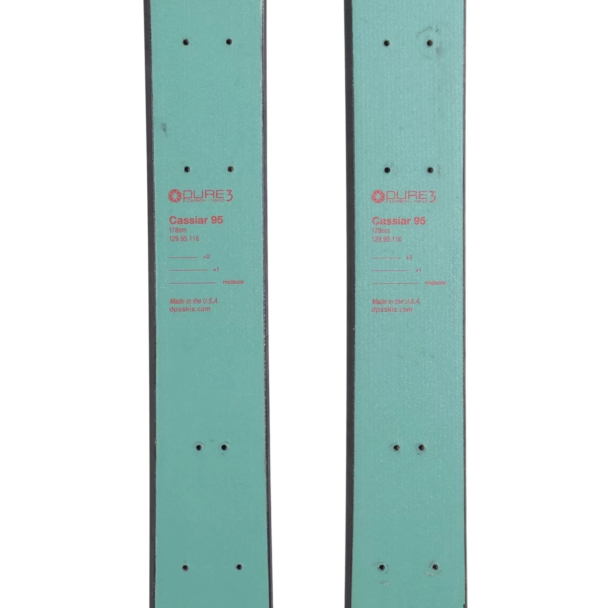 Carve your path through the mountains with the DPS Cassiar 95 Pure3 Skis, a masterpiece of design that combines agility and power in a sleek 178cm package. Engineered with DPS's groundbreaking Pure3 construction, these skis offer an unparalleled fusion of lightweight carbon technology and hard-charging performance. The unique carbon laminate dramatically reduces weight without sacrificing the stiffness needed to power through varied conditions, making each turn crisp and responsive. With a 95mm waist, the Cassiar 95 strikes a perfect balance between buoyancy in powder and precision on hardpack, ensuring a smooth ride wherever your adventures take you.