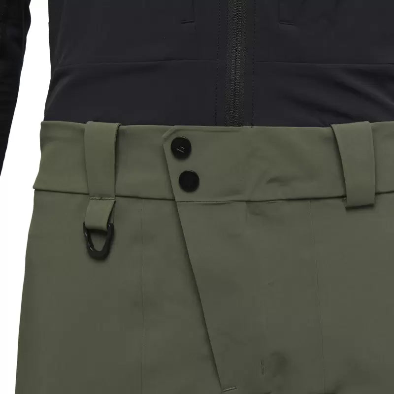 A burly 3-layer bib built for deep days in the backcountry from the Chugach to Chamonix, the Recon Stretch Pro Bib combines a breathable stretch racerback upper bib with a reinforced seat and knees for added protection in the backcountry. The BD.dry shell fabric seals out moisture for over-the-shoulder off-piste conditions and storm day sidecountry missions, while the four-way stretch adds mobility and breathability while earning your turns. A center-front zipper entry provides easy on and off, and the separating front bib strap has a ladder-lock adjustment for dialing in the fit.