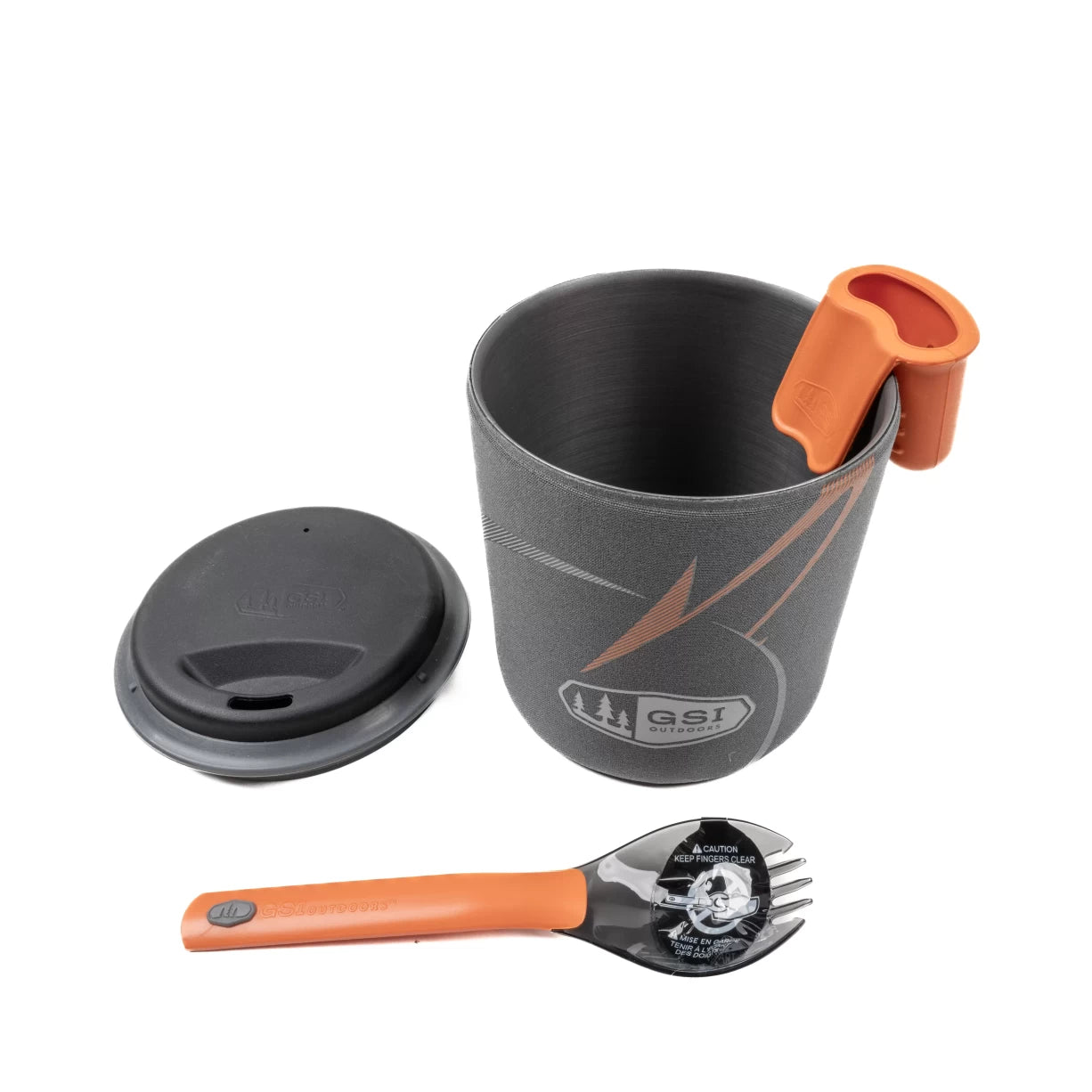 - Includes a 0.6 L pot that doubles as a mug, a sip-it top, a folding Foon and a silicone gripper