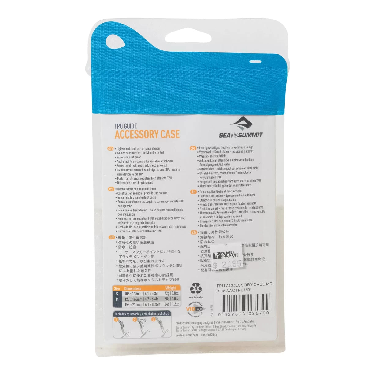 - The medium Sea to Summit TPU Accessory Case includes a neck strap