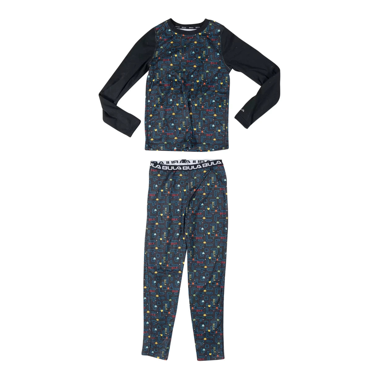 The Bula Base Layer Set for kids is designed to provide ultimate comfort and warmth during cold weather activities. This set, made from a blend of polyester and spandex, ensures a snug fit while allowing for full range of motion. The material is also quick-drying and moisture-wicking, keeping your child dry and comfortable throughout the day. The top features a crew neck and long sleeves, while the bottoms have an elastic waist for a secure fit. This set is perfect for layering under winter clothing for extra insulation.