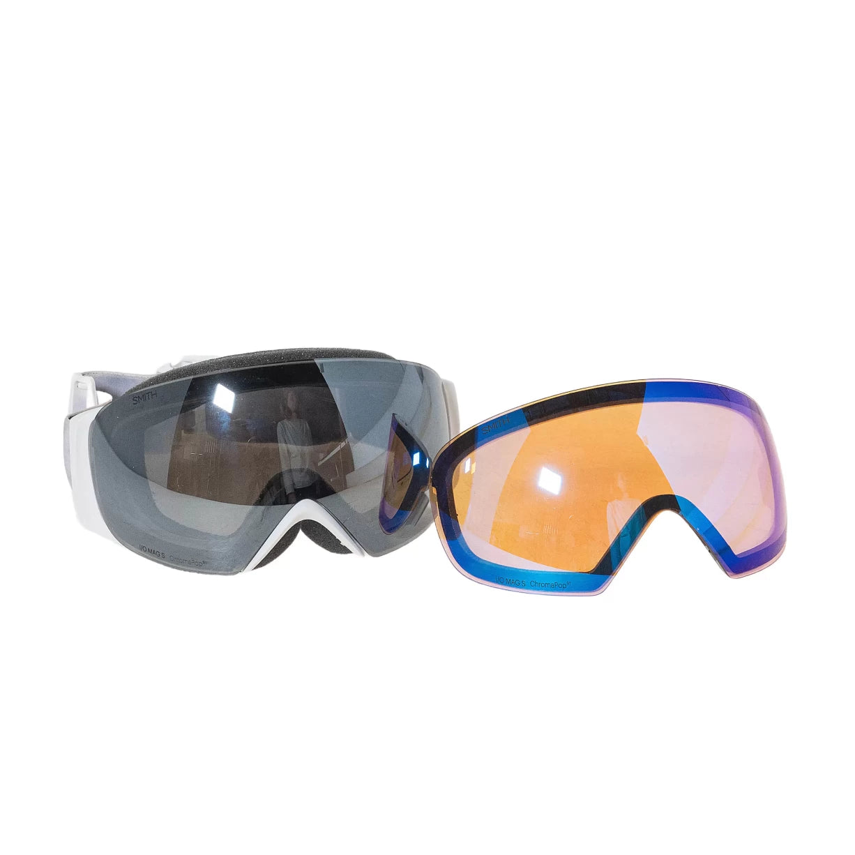 This UnNew Smith I/O MAG S Goggle is in Excellent condition. Light smudges on one lens. Includes ChromaPop Storm Yellow Flash and ChromaPop Sun Platinum Mirror lens and soft storage bag.