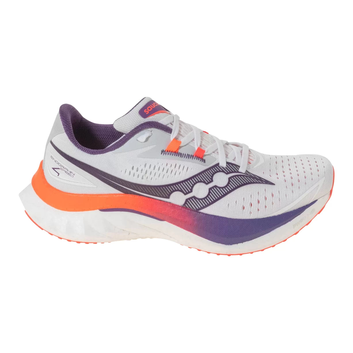 The Saucony Endorphin Speed 4 is a testament to performance innovation, designed to help you push your limits with every stride. This model features an updated S-curve winged nylon plate, which is expertly engineered to provide a smooth and responsive ride from heel to toe. The shoe's lightweight PWRRUN PB cushioning ensures a plush, energetic feel underfoot, making it ideal for both training sessions and race day. With its bold, race-inspired look, the Endorphin Speed 4 not only feels fast but also inspires confidence with its sleek, streamlined design.