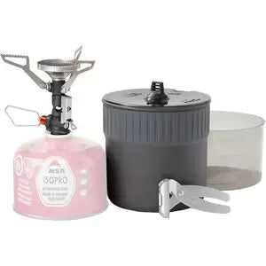 MSR's Pocket Rocket quickly became a crowd favorite when it was introduced, and now it's included in this set to offer ultralight, fast heat for your cooking needs. A push-start ignition, fast boil times, and a spacious burner allow you to distribute heat throughout your food or water faster than the previous versions. This Deluxe Stove kit nests the Trail Mini Duo cookset and the stove inside a 1.2-liter anodized aluminum pot, as well as a Mini Lite Lifter and a 4-8 ounce canister of fuel. A cold- and heat-safe bowl nests on the outside of the pot so you can share your food or drink with a partner, and the entire kit weighs in at just 13 ounces so you can easily stow it in your pack even if you're going alone.