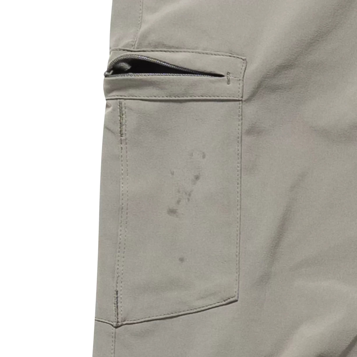 - Dirt/dust on right pant leg and hem, could be washed and removed